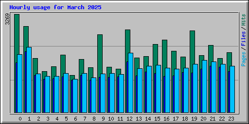 | Hour | Hits | Files | Pages | KBytes | ||||||||