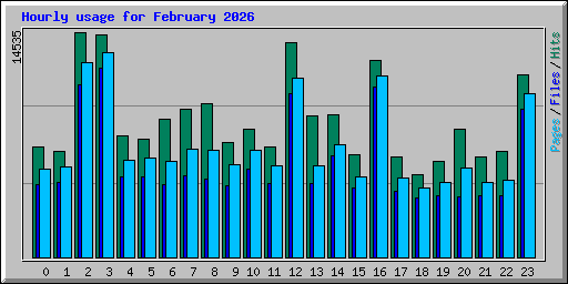 | Hour | Hits | Files | Pages | KBytes | ||||||||